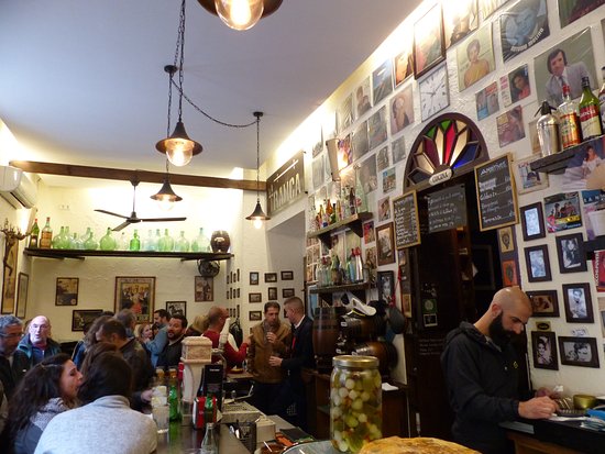 My favourite one! Very close to the city centre, but as a visitor on your way to the main attractions, you probably wouldn’t come this way. Make sure you do! It’s always packed, you might have to wait a bit to get in, but it’s worth it! Enjoy truly delicious tapas and a tasty vermut amidst a kitschy decor, great music and really nice vibes. It’s the perfect combination of a pub and tapas bar. Your bill is written with chalk on the barrels or the wall behind you.