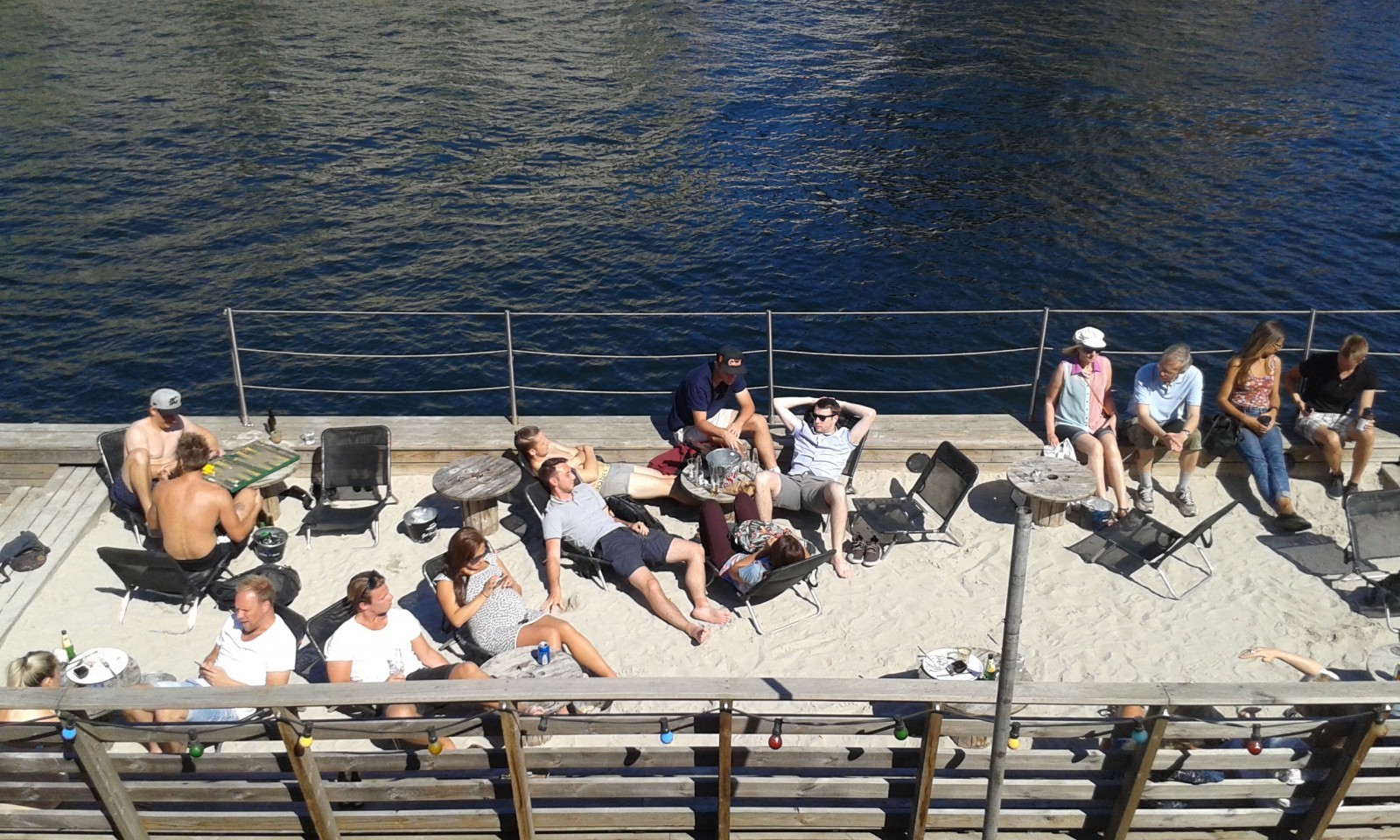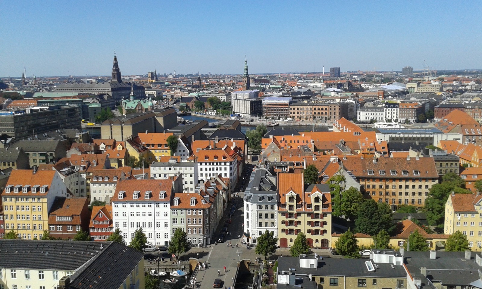 We cross the harbour once more to enter “Slotsholmen” via the Frederiksholm canal. Christiansborg Palace, the Danish Parliament and the Royal Stables all have their home here. The grandeur of Copenhagen reunited! Passing the Old Stock Exchange, I notice a stretch of beach set up on a wooden platform on the water, complete with a bar and loungers! Ah, those Danes know how to make the best of summer!