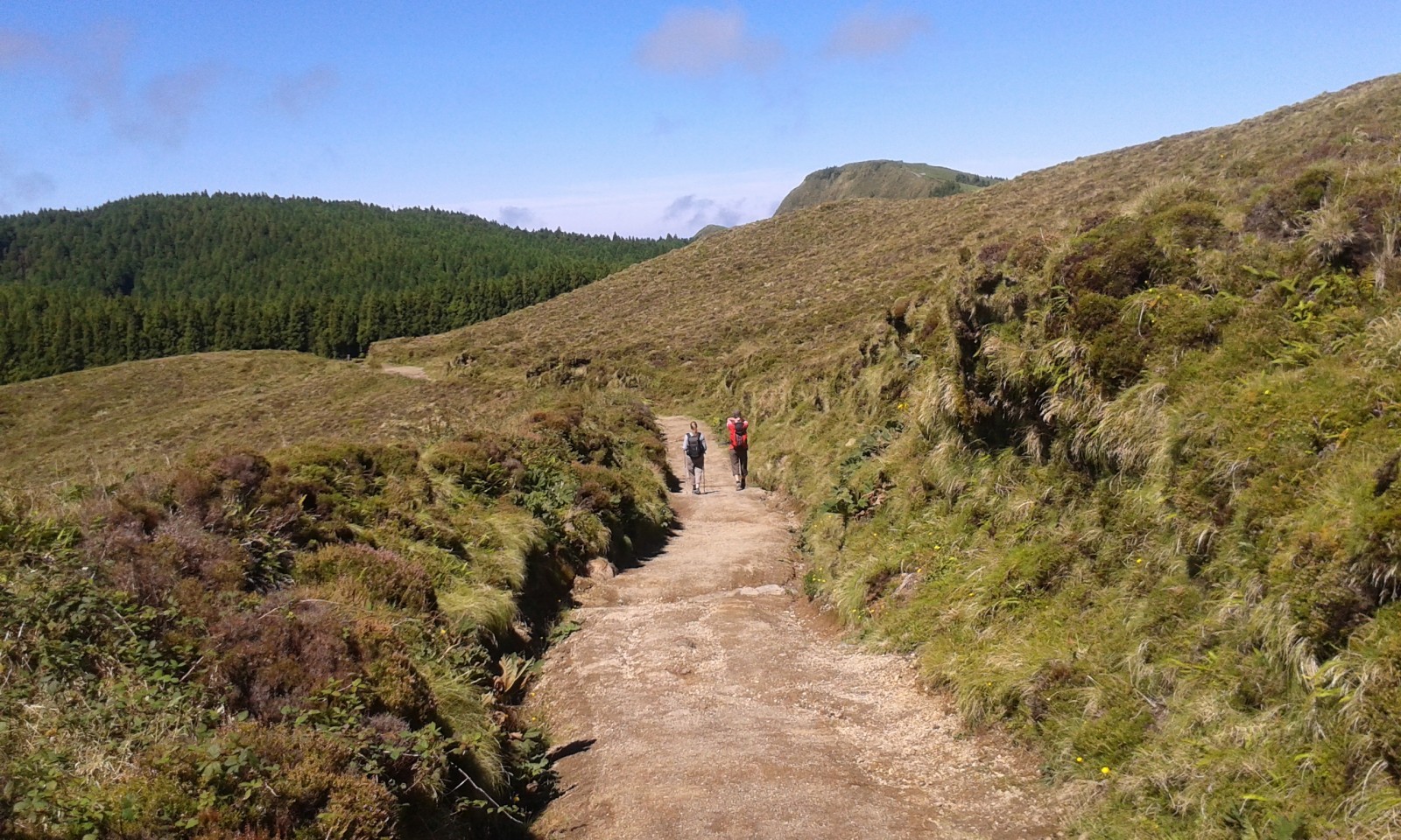 This trail is a linear trail, so you’ll need to rely on catching a lift or a taxi back to the starting point. It starts at the Vista do Rei viewpoint and should take you approximately 2 hours. All along you’ll follow the ridge of the crater, accompanied by views of its interior and the lakes. The path to the village is rather steep and can be slippery in wet weather, so be careful.