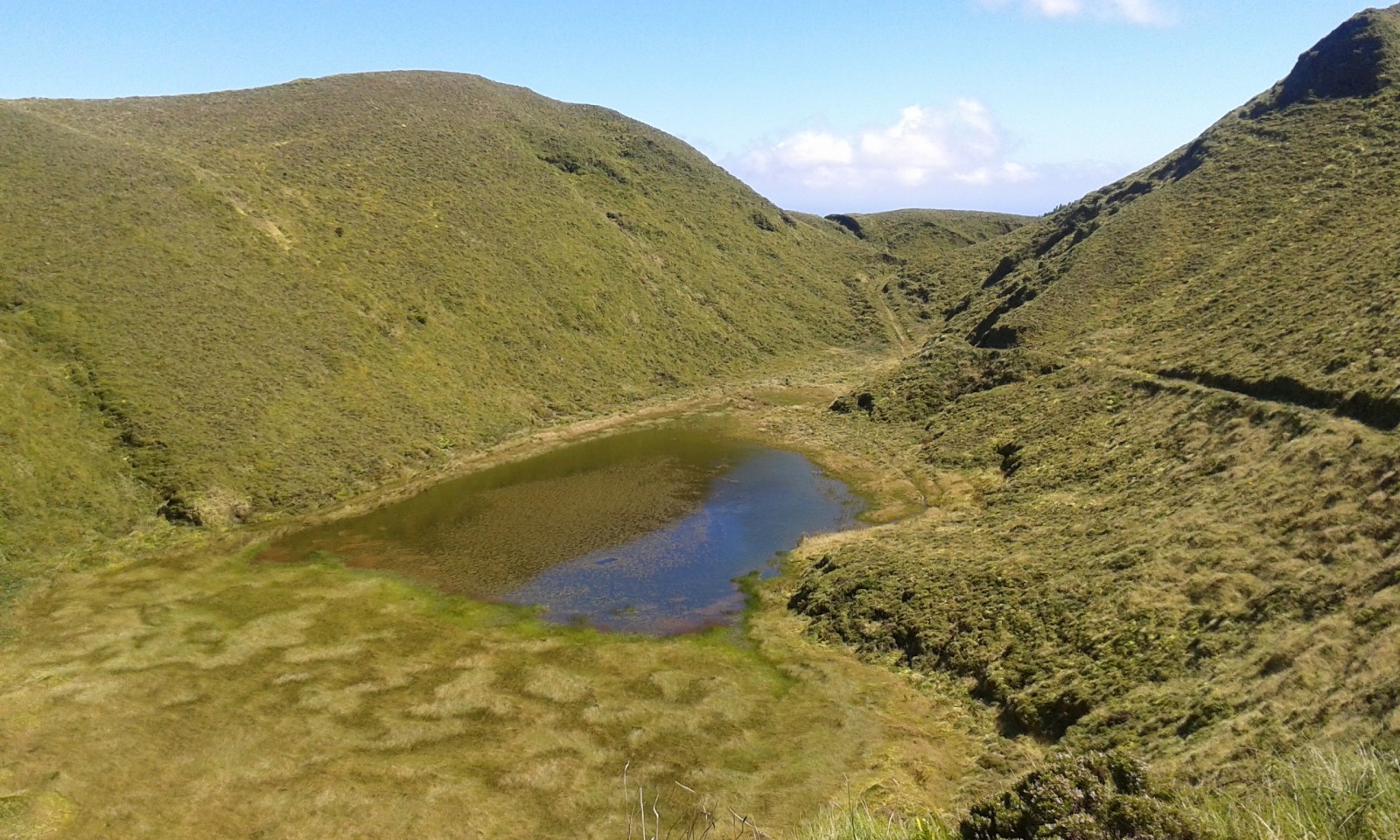 When you reach the top of the hillside, you can see the “Lagoa das Éguas” to your left, and a small round lake to your right. A little further ahead you will come to vantage point, where you can view the two aforementioned lakes on your left, and the Lagoa Rasa, on your right.