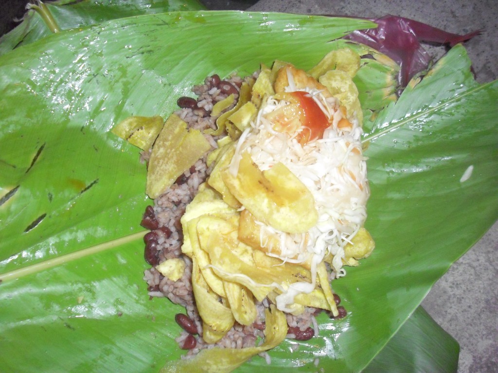 Return to Parque Central in the evening, when the fritangas (food stalls) have taken over the place, to sample a typical Nicaraguan streetfood dish: vigorón. It consists of pork rinds, rice, beans, fried cheese, coleslaw and chilli sauce served on a banana leaf. Pretty tasty, but it’s not easy to eat the whole thing with your hands without making a mess…!
